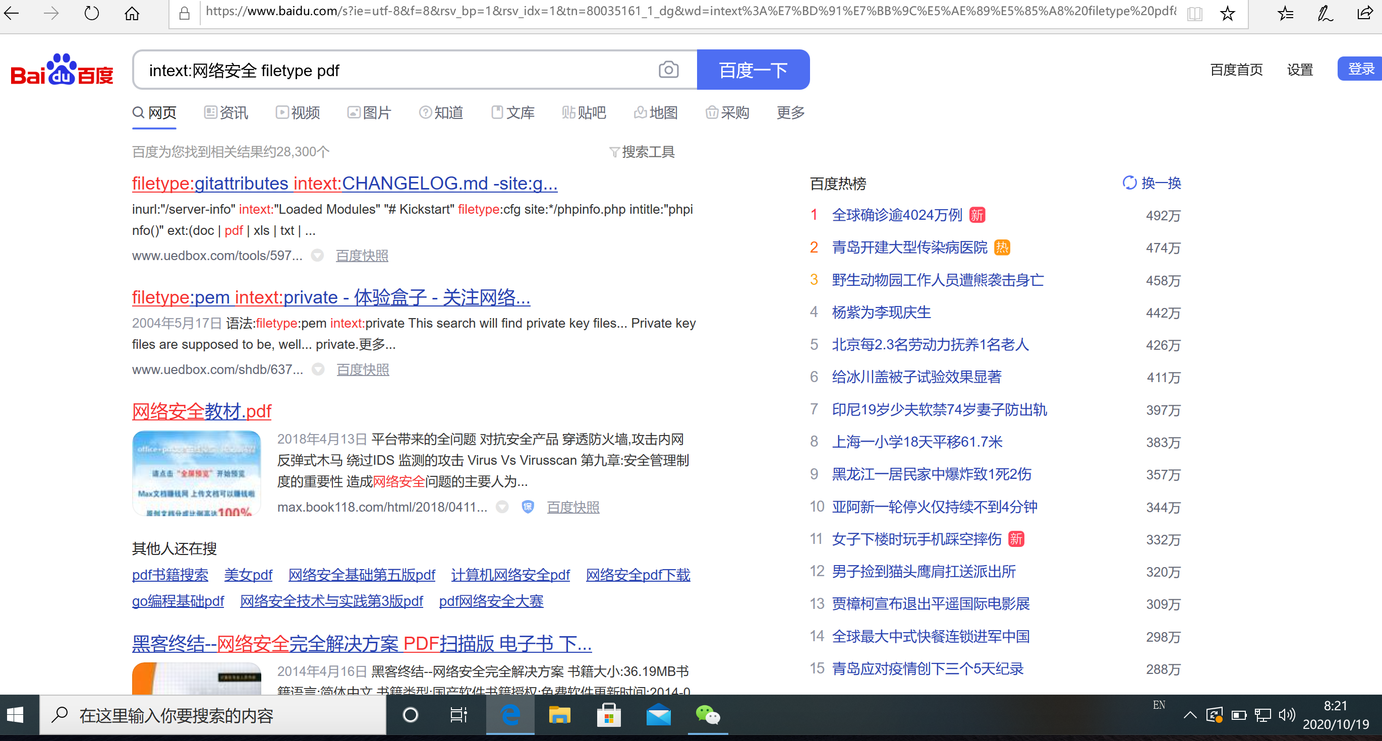 用百度或google搜索所有包含“网络安全”的pdf文档(附截图)