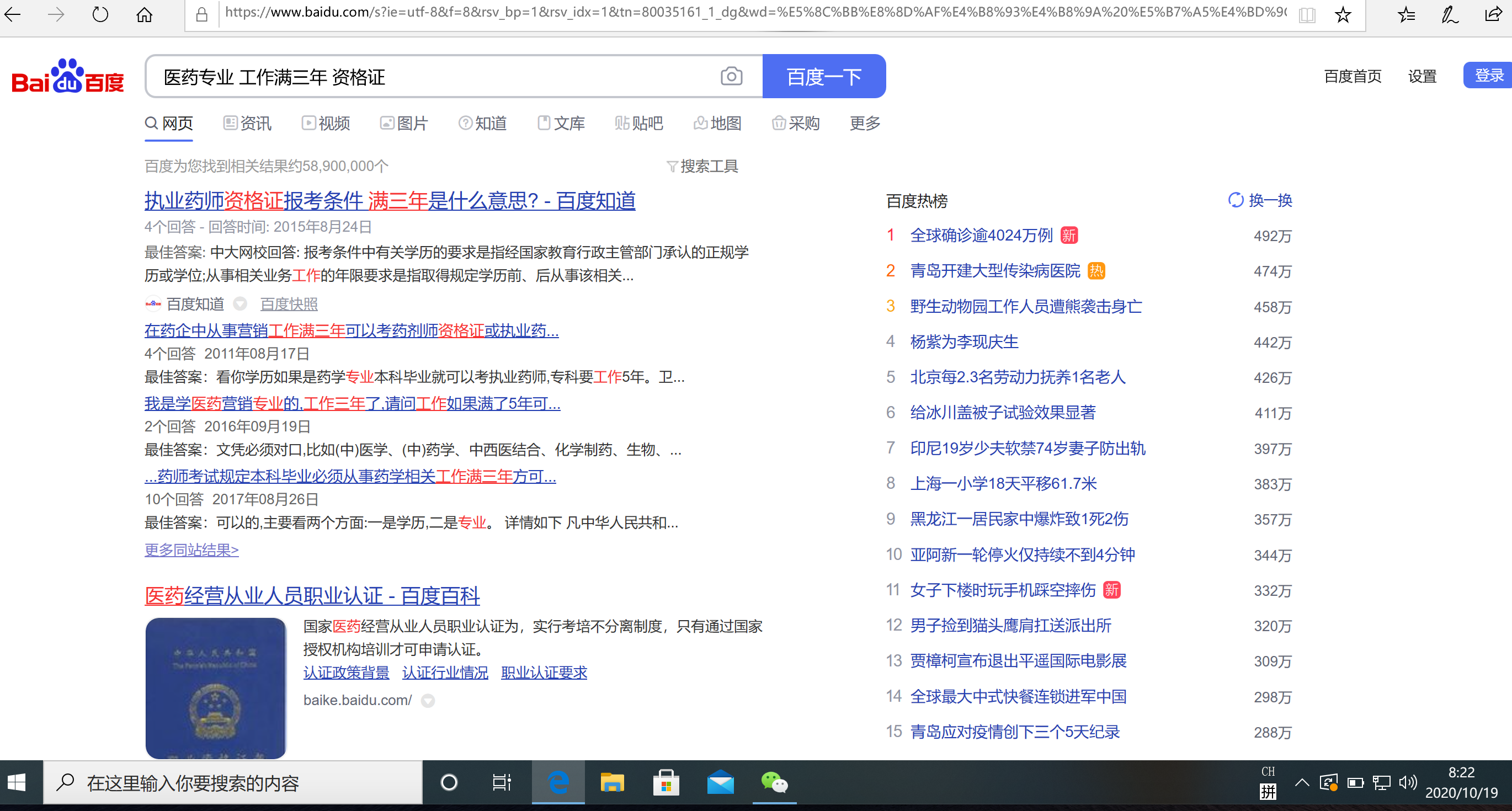 小丽是药学专业的一名本科生,现已从事药学专业的工作,目前她想考取一个资格证,但是报名条件中要求其工作满三年。那么,小丽想考取的是什么证。(请回答并附截图证明。)