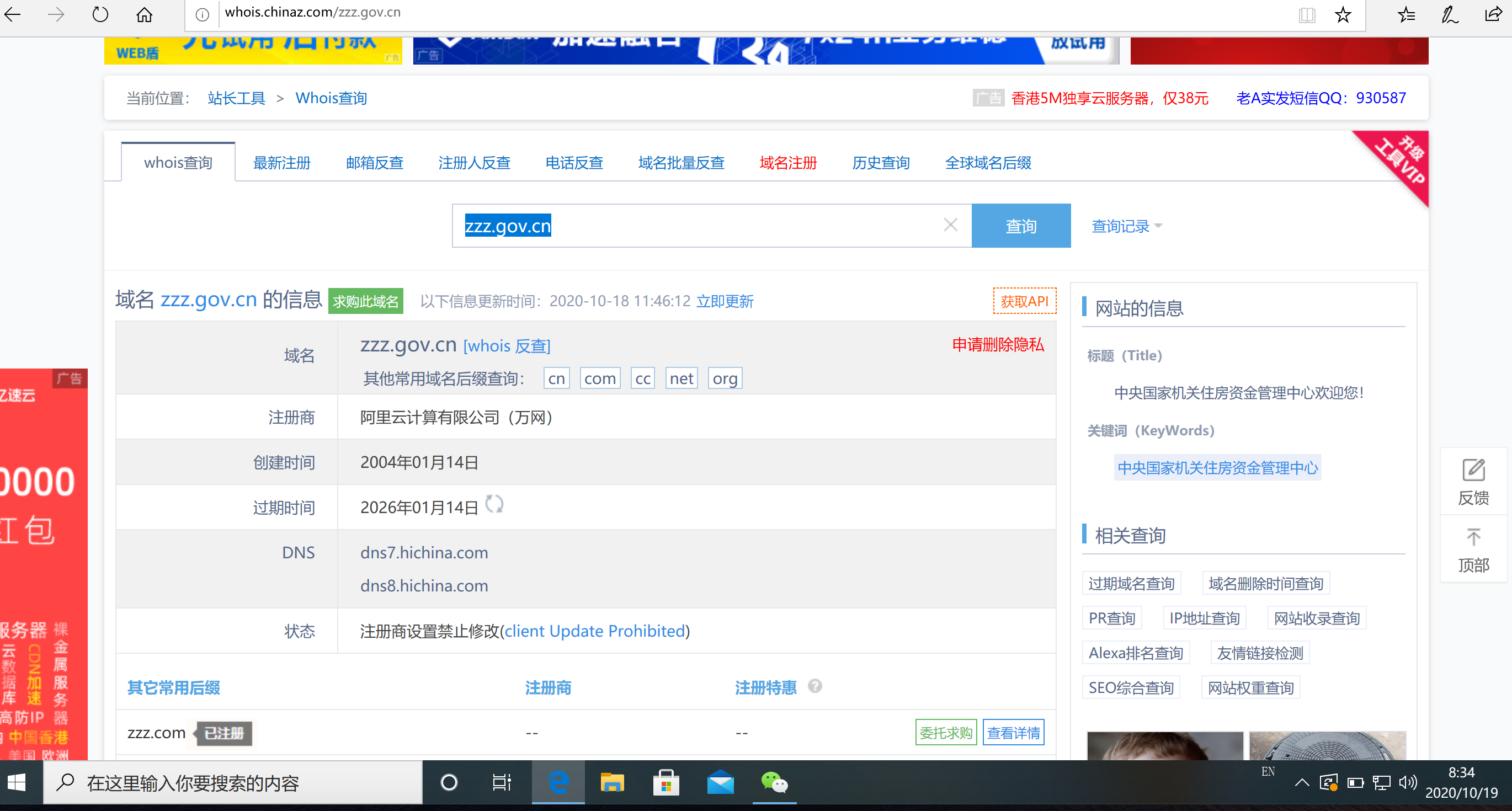 获取www.zzz.gov.cn域名注册时,注册人的邮箱是(附截图)