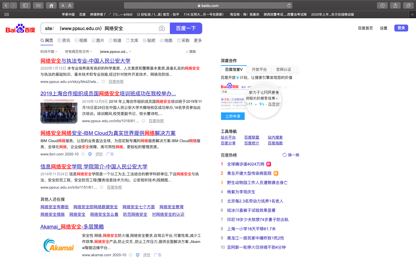 问题一:用百度或google搜索www.ppsuc.edu.cn中所有包含“网络安全”的网页。(附截图)