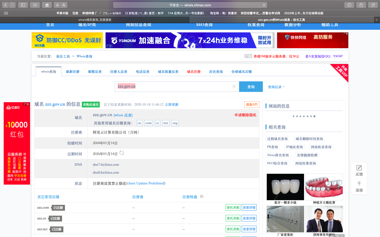 获取www.zzz.gov.cn域名注册时,注册人的邮箱是(附截图)
