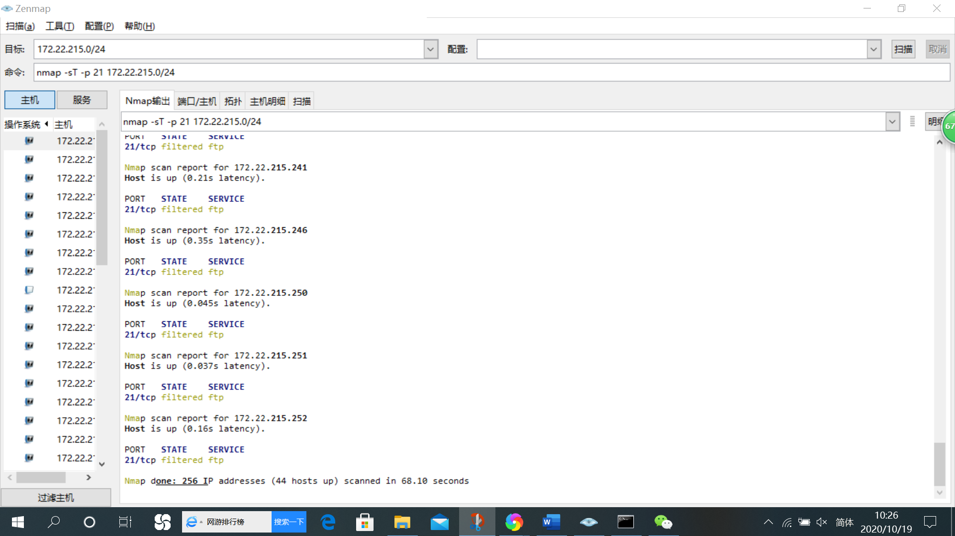 请查询本机的IP地址和子网掩码,并在局域网中扫描本网段内的所有存活主机(附截图