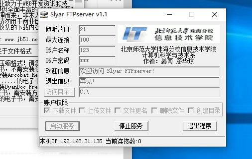 1、两个同学配合完成,A同学搭建FTP服务器,并新建用户,并设置登陆密码