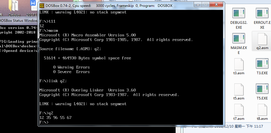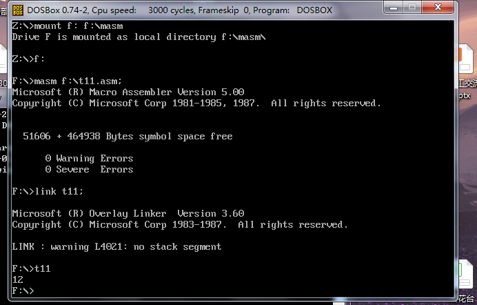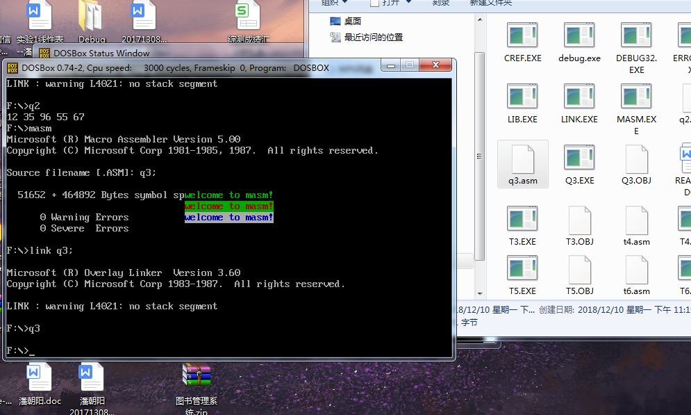 运行之后在dosbox窗口中间出现了三排“welcome to masm!”字样