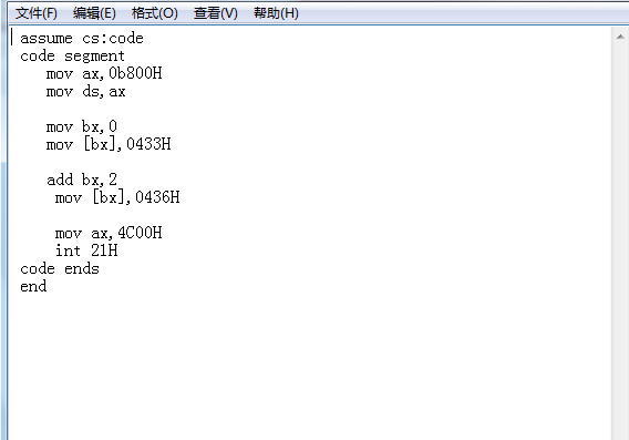 将实验指导.PDF中的代码写入记事本中,更改后缀为asm文件
