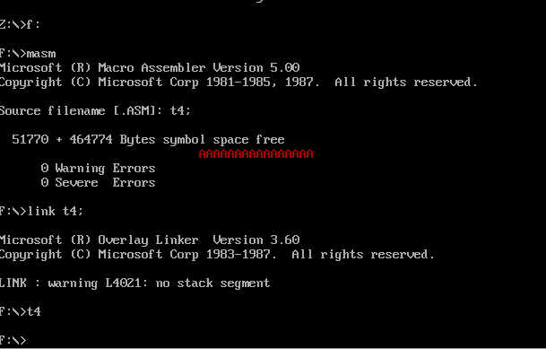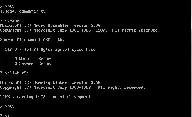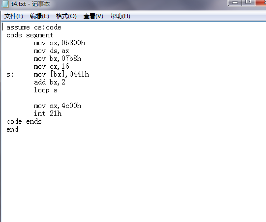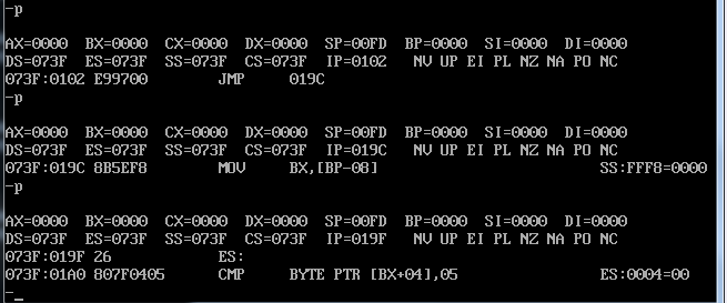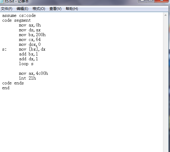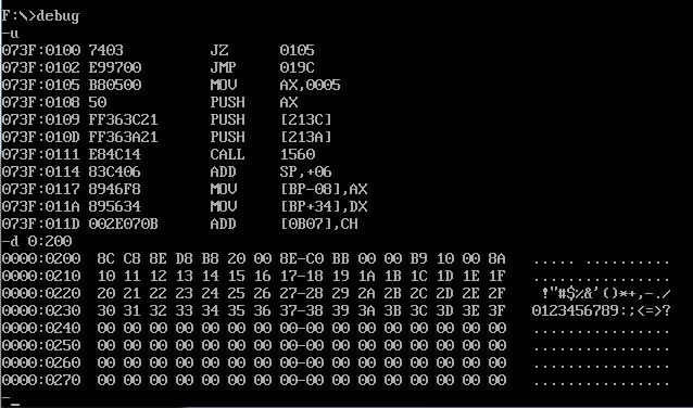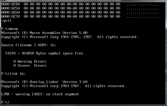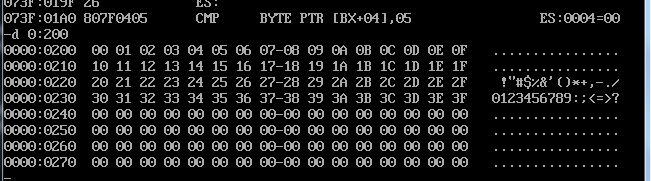 编译链接运行无误后,对t6进行debug,先使用-u命令反汇编再使用-d命令查看