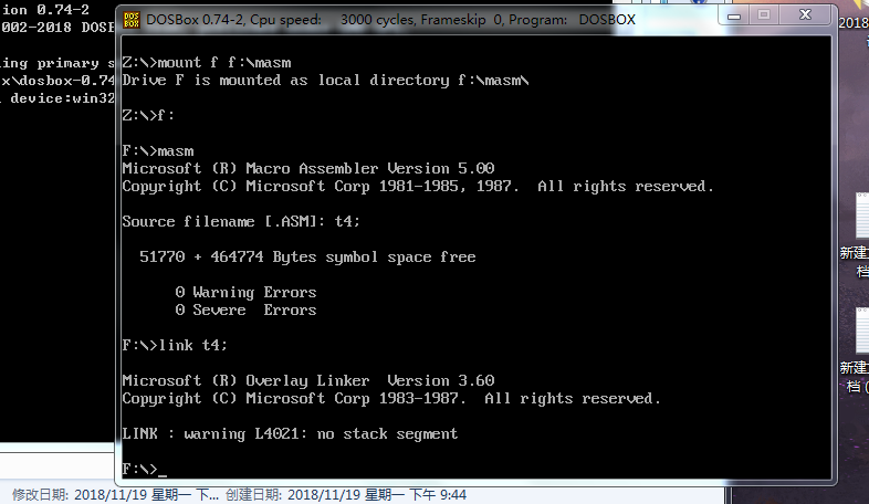 这次的实验练习了[bx]与loop指令的使用,加深了对masm操作的熟练度,但是在练习三中出现了错误,与预期的结果不符,对于错误原因的寻找还是做的不够到位,有些原理不明白。