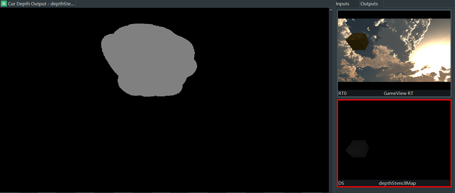 要正确渲染出结果,得需要知道什么时候会进行上下翻转。为了探究Unity进行翻转渲染的阶段,设计了三种情况(左图为模板缓冲,右上为颜色缓冲,右下为深度缓冲):