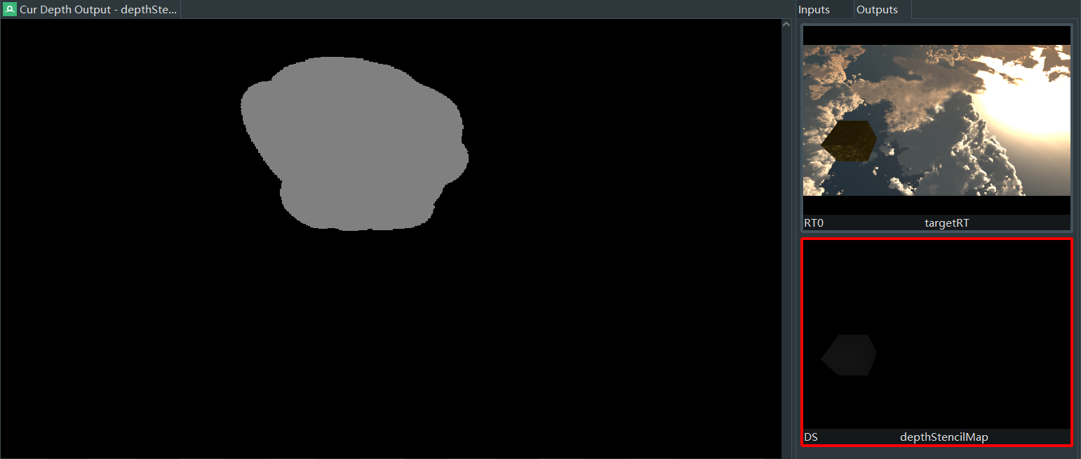 所以为了渲染出正常效果,要想直接输出到屏幕上,需要翻转深度/模板缓冲(由于该纹理数据是D32S8,无法通过Shader修改,所以没能实现)。另一种办法,就是先输出到中间纹理(如情况3),然后把中间纹理直接输出到屏幕上。依照这种思路,可以渲染出正确结果。