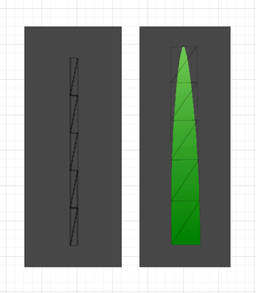 生成草的顶点数据(根据不同的LOD,有1到5个面片的顶点构造情况),目前草的视锥剔除有问题,根部不在视野内就会把整颗草都清除掉: