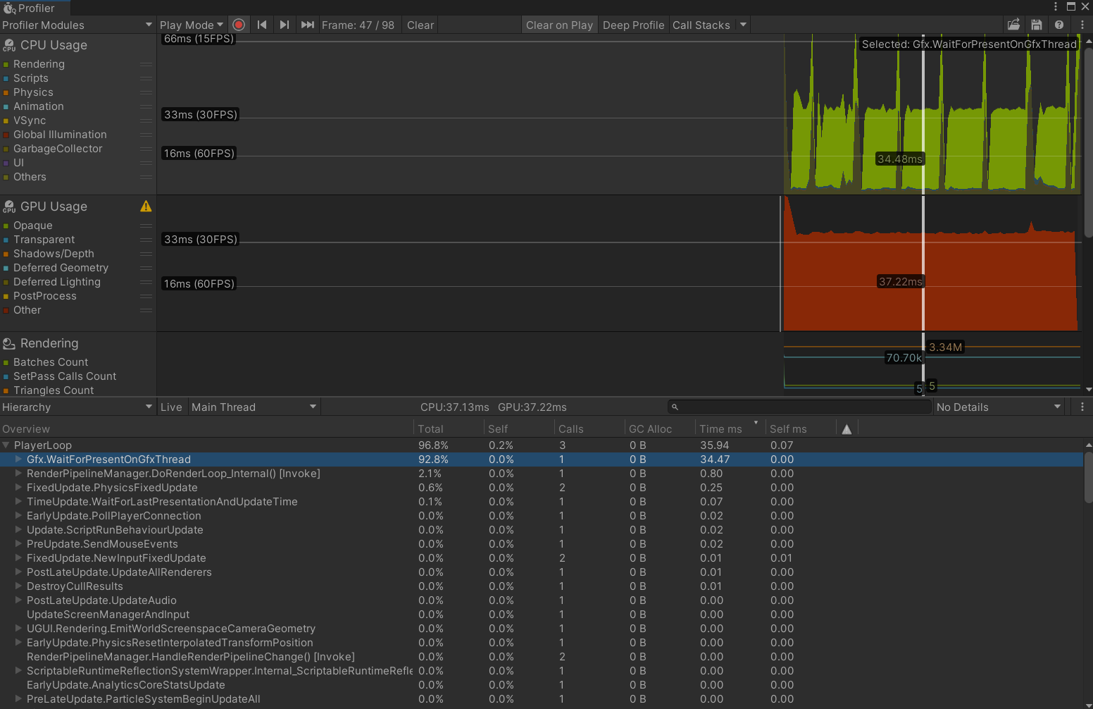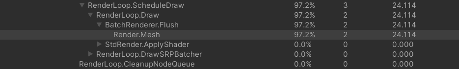 视锥剔除前渲染线程大概是1.3ms,CPU操作0.1ms(计算各种空间数据,处理地面分块)。