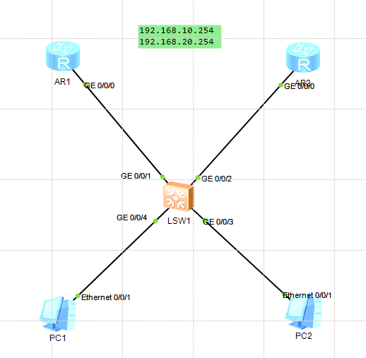 R1的G0/0/0.1接口做网关10.254的主节点,做IP20.254的备份节点