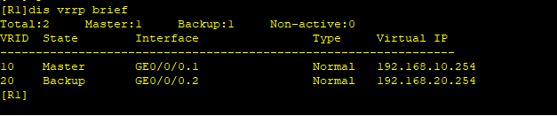 vrrp vrid 20 virtual-ip 192.168.20.254