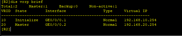 R2的G0/0/0.1接口做网关20.254的主节点,做IP10.254的备份节点