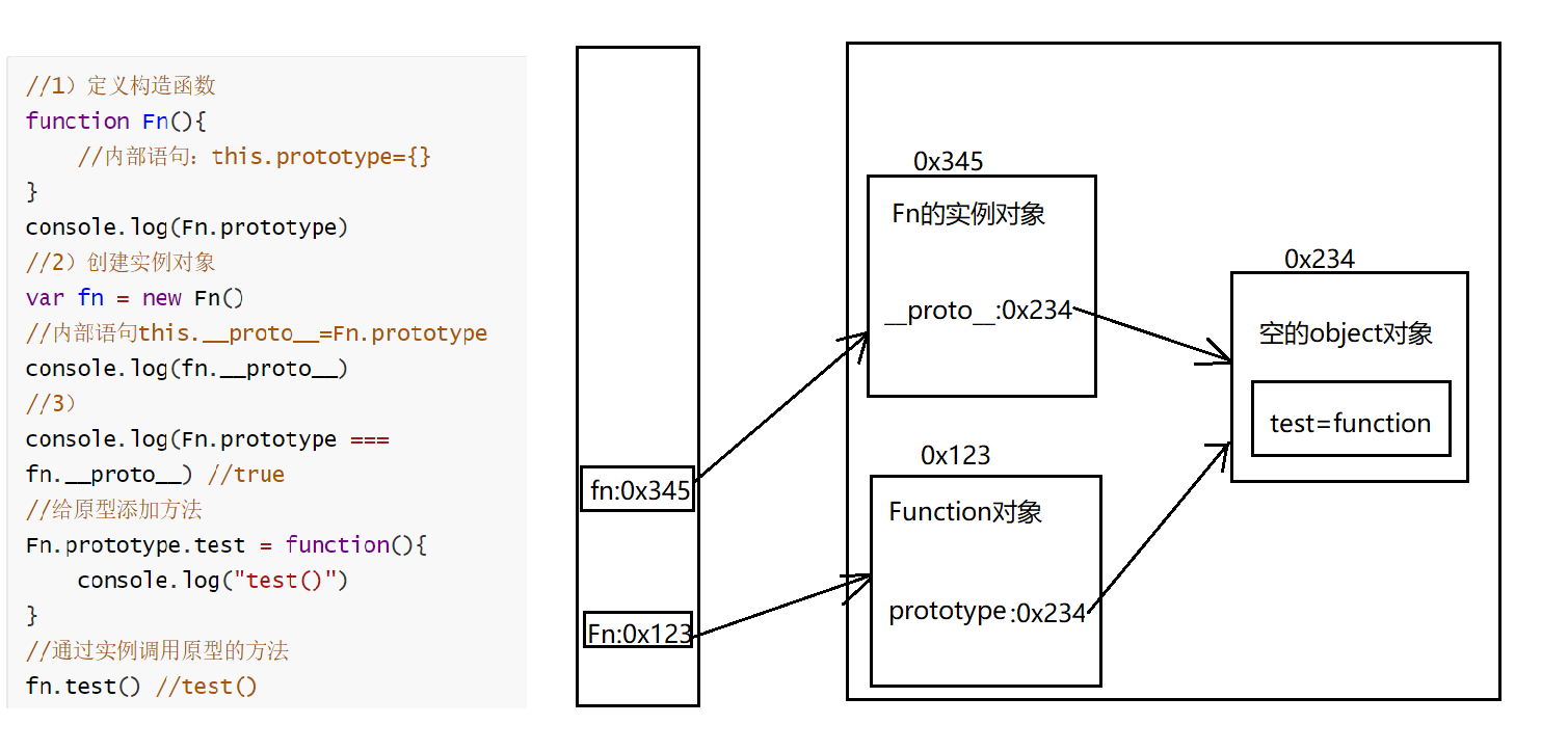 var fn = new Fn() //实例对象的隐式原型属性=构造函数的显式原型属性