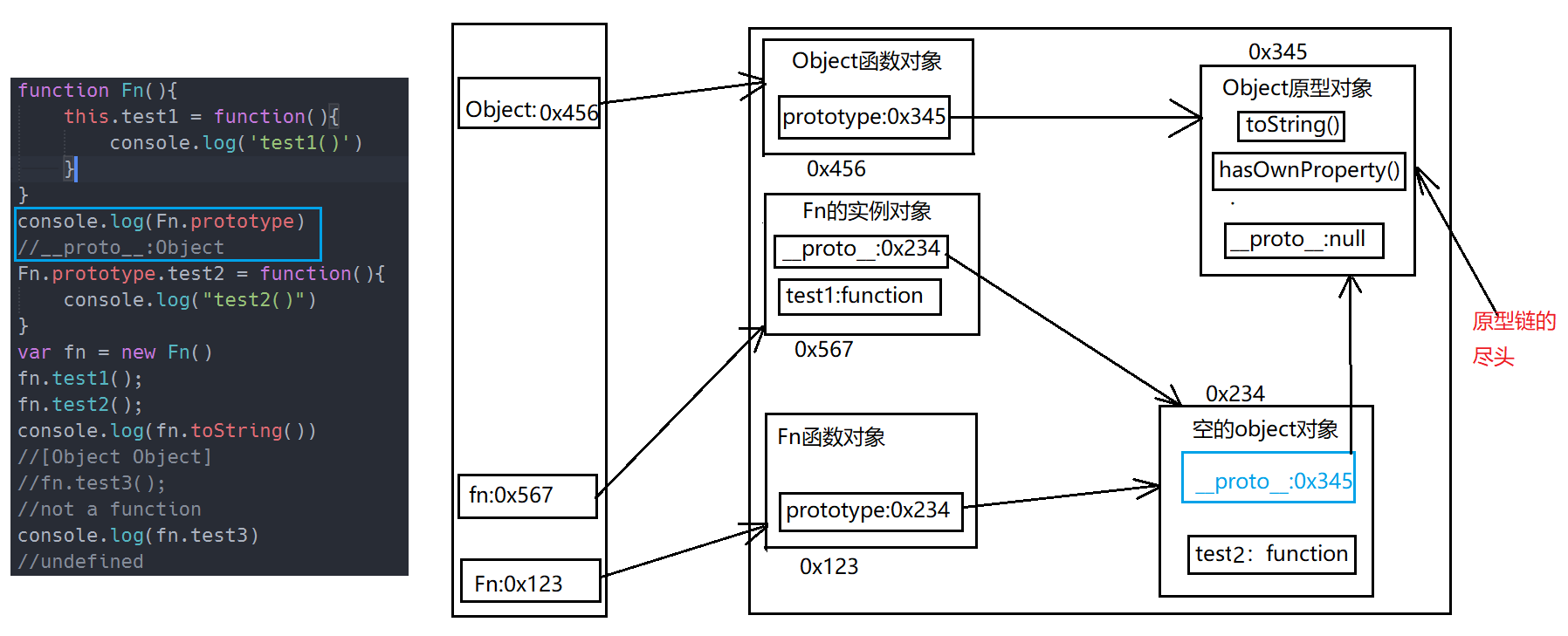 console.log(Object.prototype == fn.__proto__.__proto__) //true