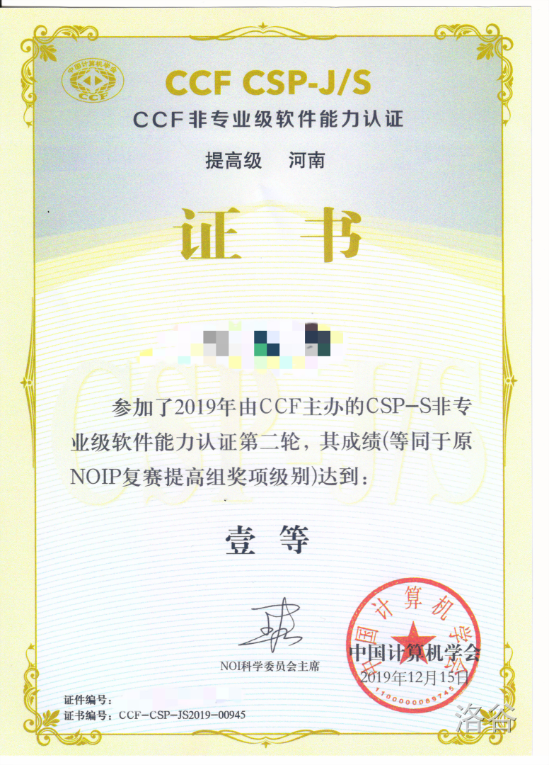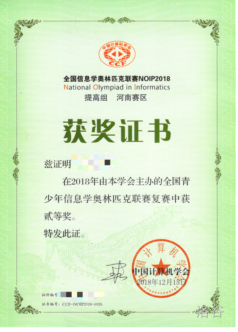 不过高二上学期开学时,由于一些原因学校的培训不得不中止,人数也锐减,虽然最后参赛的有五个人,但平常一直在机房的也就两个人,所以我们两个人就自己准备\(NOIP2018\),不过由于后期的没有系统性的学习,最后凭借一手暴力算是狗到一个二等奖吧,联赛后准备学业水平测试,就停了一段时间,学业水平测试后经过我们两个人考虑都打算参加\(NOIP2019\)(虽然这个愿望落空了,因为\(NOIP\)已经死了)。所以我就根据当时手上的两本资料《焦作一中信息学奥赛校本教材·提高篇》和《信息学奥赛一本通·提高篇》在学习更有难度的算法,当年寒假还参加了在河南省实验的培训,这次培训算是我比较满意的吧,算法能听懂,代码也能写出来,最后结业的时候成绩是第四名吧,差一名拿到奖金,想想还是怪可惜了。回来之后就开始正常的学习,也平衡了文化课和竞赛。