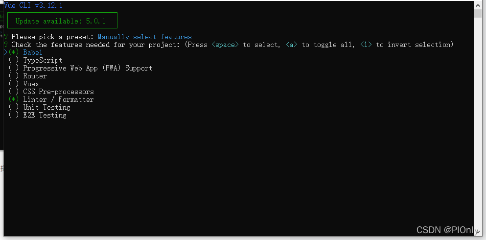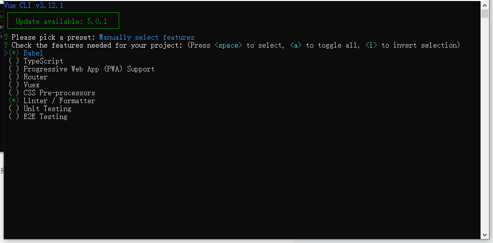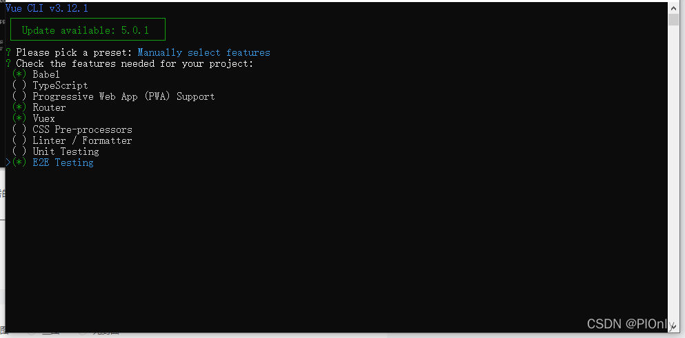 其他功能我这里随便选择一下,大家可按需勾选,但重点要勾选:E2E Testing。然后回车