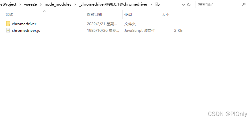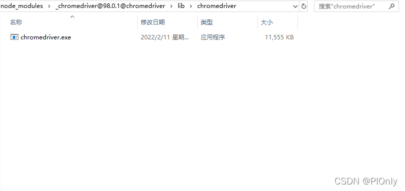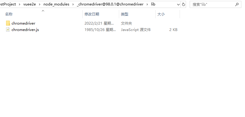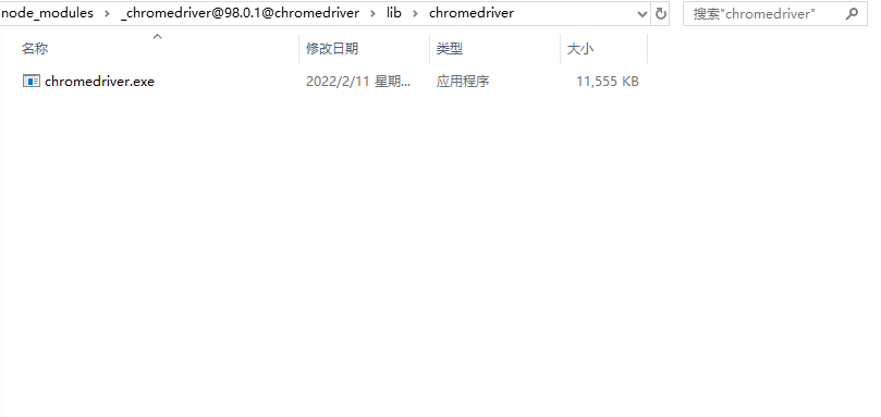 结果还是报错了 ,再看错误日志,查看node_modules/_chromedriver@98.0.1@chromedriver/lib路径下的chromedriver文件夹里的chromedriver.exe