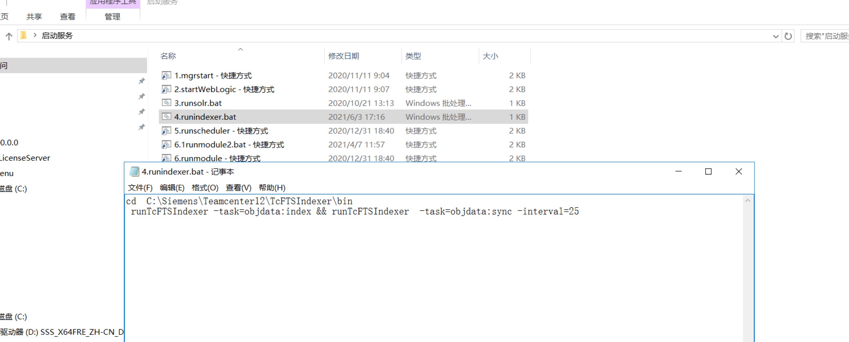 cd C:\Siemens\Teamcenter12\TcFTSIndexer\bin runTcFTSIndexer -task=objdata:index