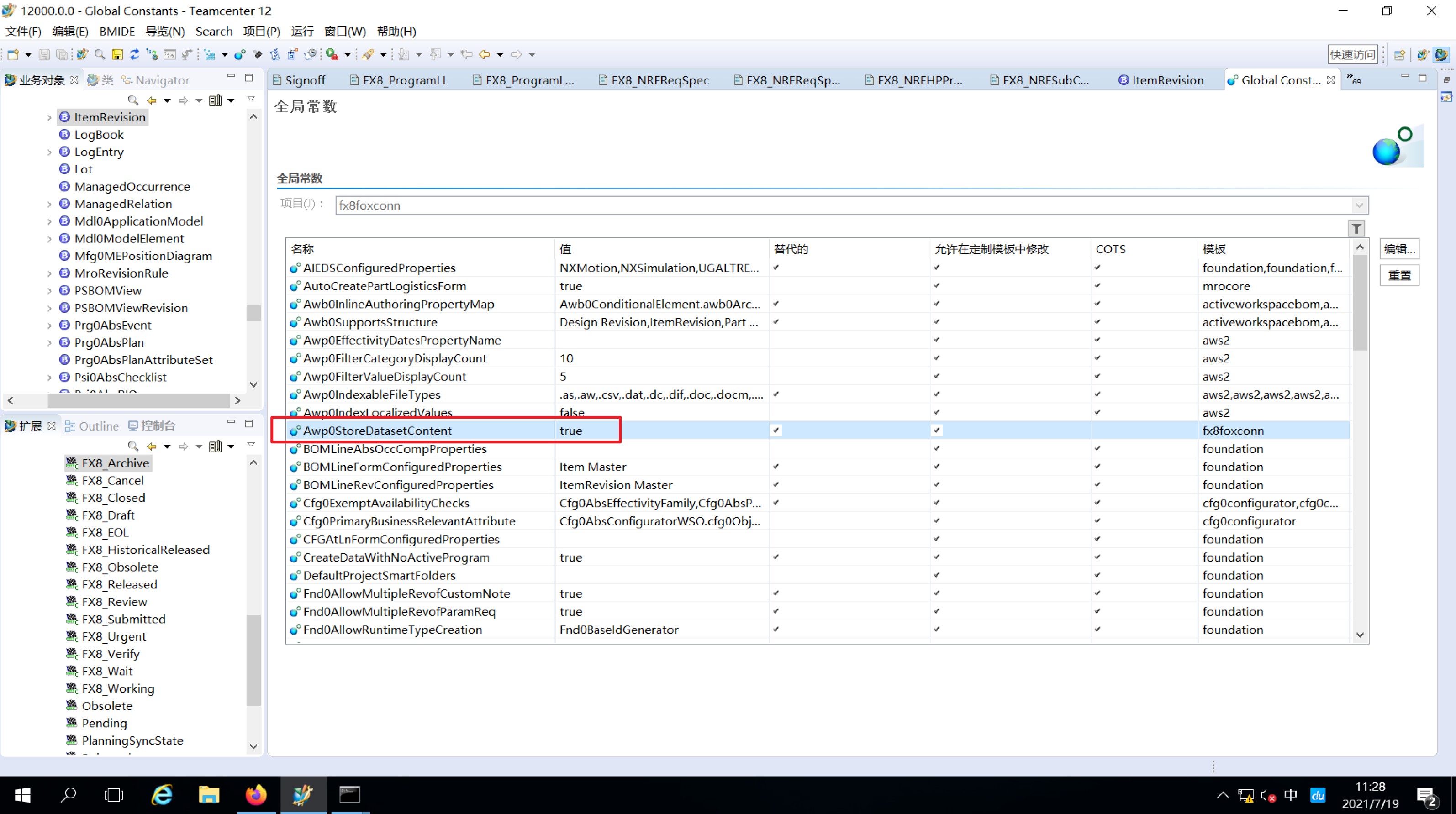 1.在BMIDE修改全局参数Awp0StoreDatasetContent,设置为true,然后部署BMIDE