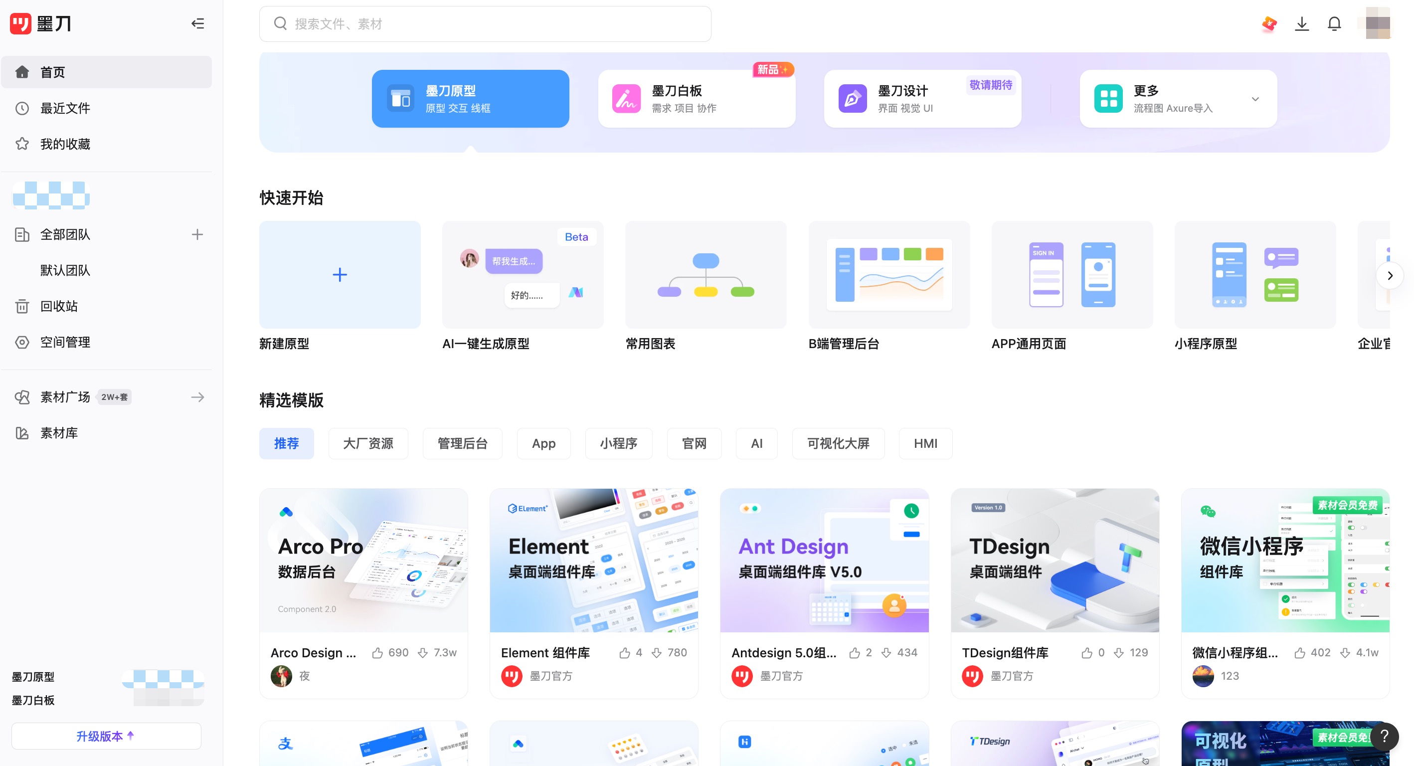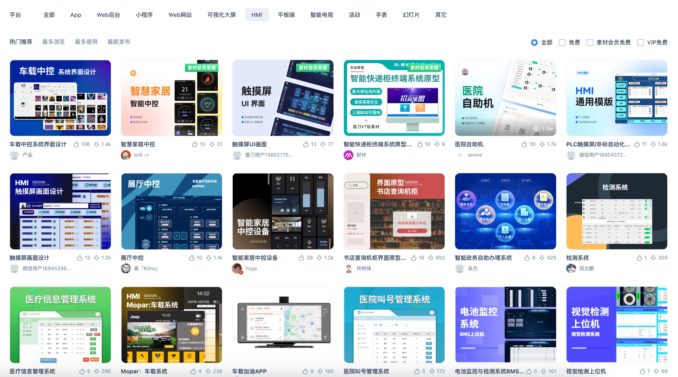 这是墨刀原型工具中自带的素材资源库,一部分由墨刀官方分享大厂资源以及标准化组件素材,另外大部分来源于墨刀用户自发分享的行业模板资源,有电商/医疗/金融/政务/工业等多个国内热门领域的原型设计素材,无论是APP/小程序/Web网页/可视化大屏/HMI/智能电视手表等等,都能找到相应的原型文件、页面或者组件图标,共计2万+丰富素材,是产品经理必逛的一个资源库。