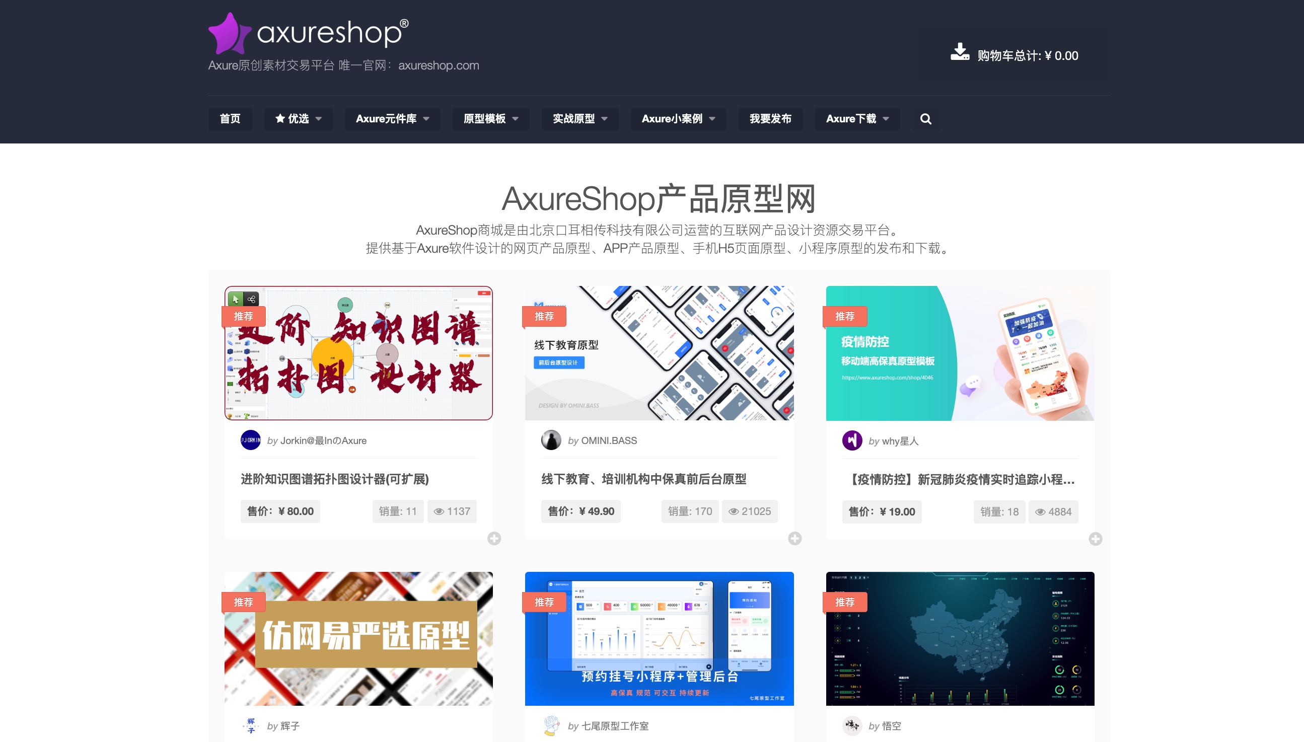 AxureShop是为Axure RP用户创造的原创素材资源平台,这里的原型资源丰富,提供基于Axure原型设计软件的Web网页产品原型、APP产品原型、H5页面原型、小程序原型等等。此平台欢迎产品经理自行发布模板以及元件库等资源,用户更新频率较高,有很多产品经理以及交互设计师分享模板资源。平时产品经理可以在这里寻找相关行业的一些原型成果进行学习。