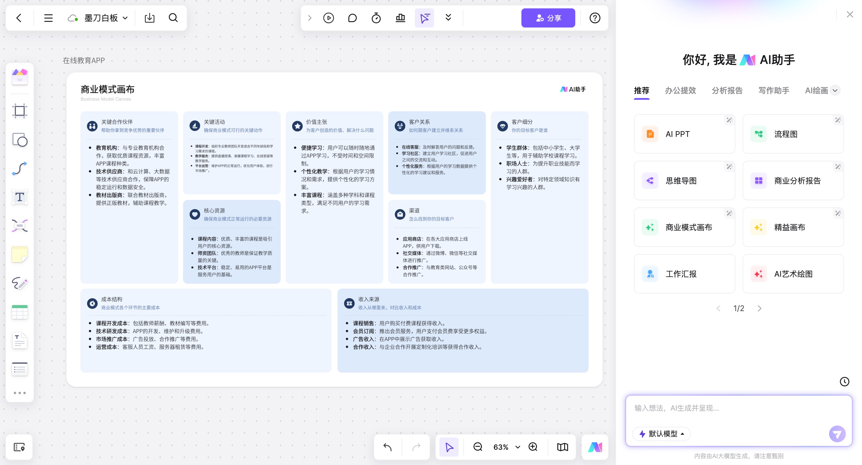 支持快速搭建高保真原型,适合产品经理与开发协作;其内置丰富的教育类组件与模板素材,尤其适合教育场景;白板AI功能也十分强大,适用于产品团队为在线教育APP头脑风暴、需求梳理;另外,这个原型工具支持私有化部署,可以满足教育机构对数据安全的高要求。