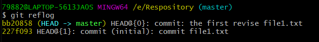 此时查看版本信息可知,已经有两个提交版本,此时我们可以通过git reset --hard +【局部索引值】指令进行版本的回溯
