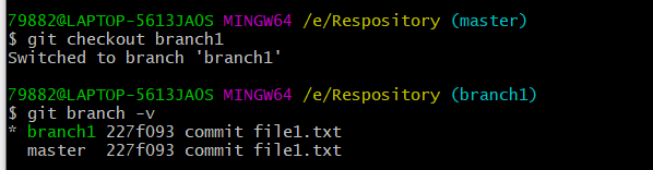 b.使用git checkout指令切换分支