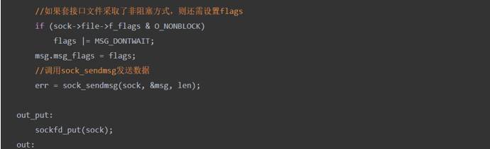 所以我们对sys_sendto函数进行分析即可,实际上该函数的作用是将数据报发送至指定的目的地址,下面对源码进行分析: