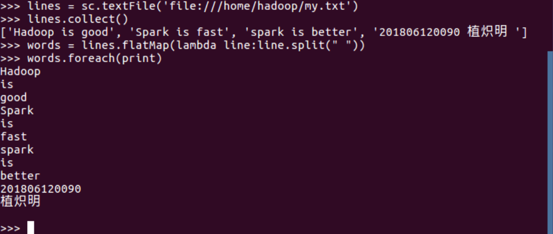 1.读文本文件生成RDD lines