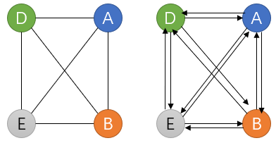 - 有向图/无向图:无向图中的边叫边,有向图中的边叫弧