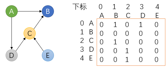 有向图的邻接矩阵是不对称的。举个例子,因为A有指向B的边,所以arcs[0][1]=1,而B没有指向A的边,所以arcs[1][0]=0,其余同。