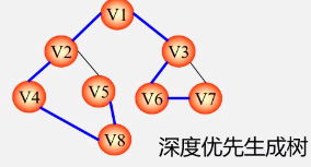 设图G是个连通图,当从图任意一顶点出发遍历图G时,将边集合分成了两个集合T和B。其中T是遍历时候所经过的边的集合,B是没经过的边的集合。显然,遍历后访问的轨迹就是图G的极小连通子图,即子图G1是连通图G的生成树。(如下)