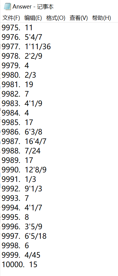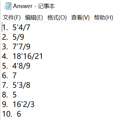 - 在生成题目的同时,计算出所有题目的答案,并存入执行程序的当前目录下的Answers.txt文件