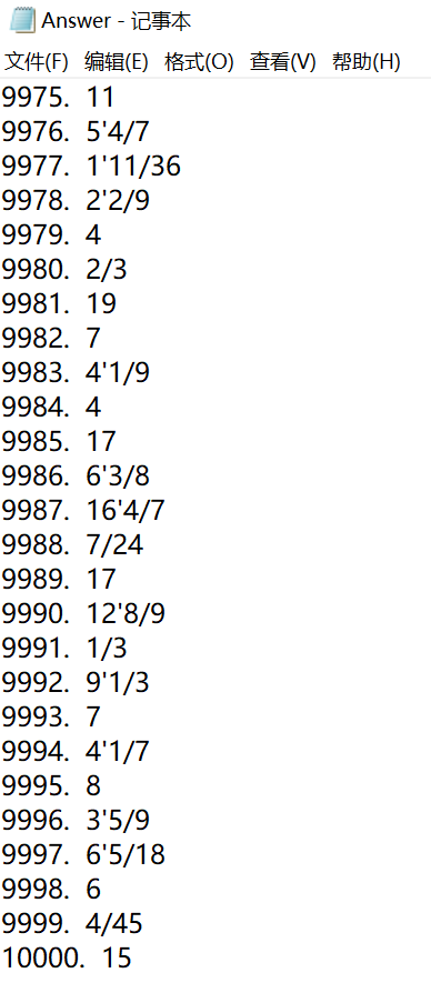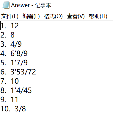 - 在生成题目的同时,计算出所有题目的答案,并存入执行程序的当前目录下的Answers.txt文件