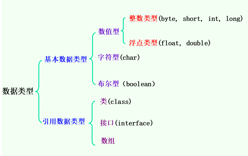 2.引用数据类型:Java语言根据基本类型扩展出的其他类型。 例如: class , interface 等