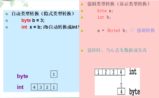 基本数据类型之间的转换: