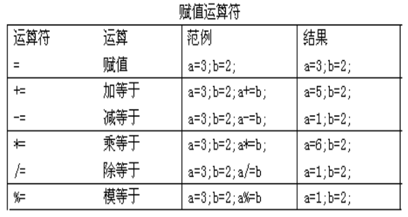 1.算术运算符 2.赋值运算符 3.比较运算符 4.逻辑运算符 5.位运算符