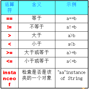 注1:比较运算符的结果都是boolean型,也就是true/false。 注2:比较运算符“==”不能误写成“=” ,切记!切记!