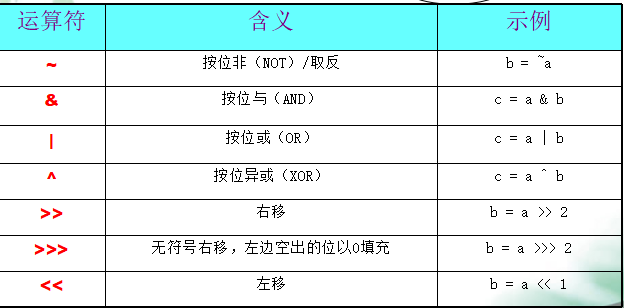 5.Java中位运算符都是通过二进制进行操作的,用于 int、short、long、byte 和 char 数据类型;