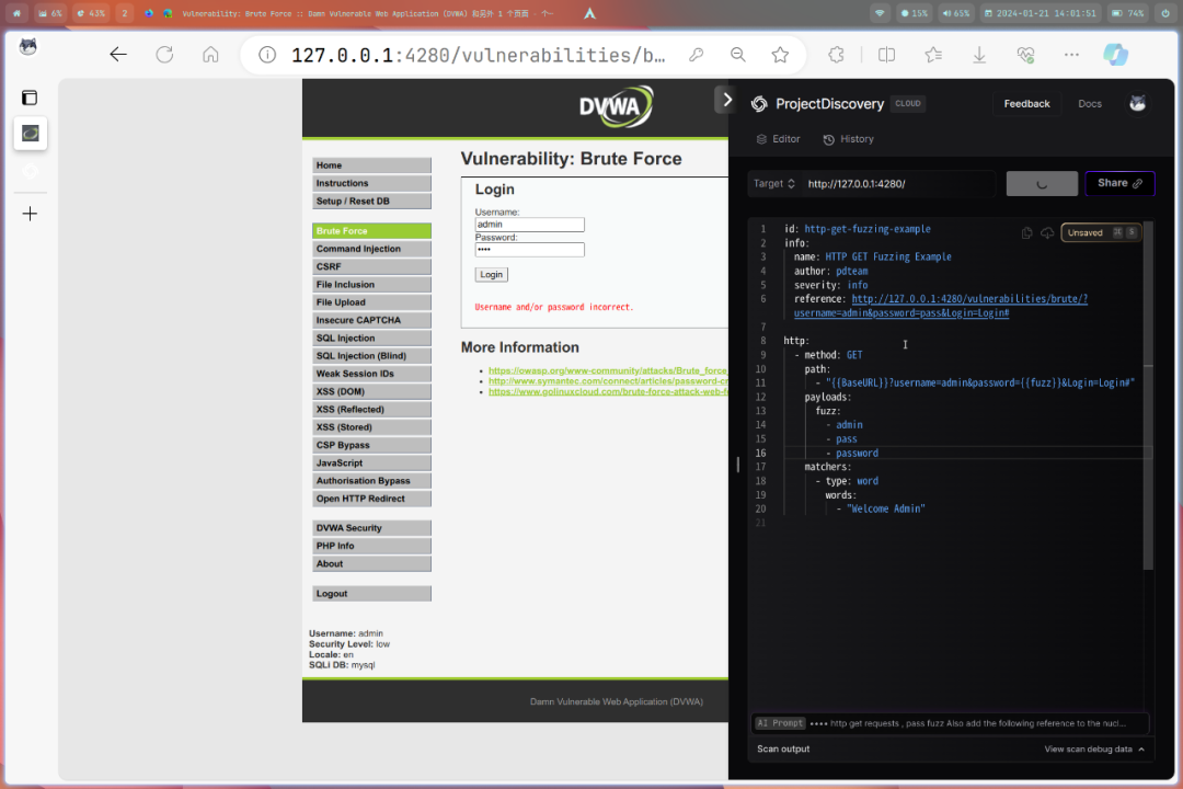 测试一:DVWA 登陆界面测试生成 pass fuzz 模板