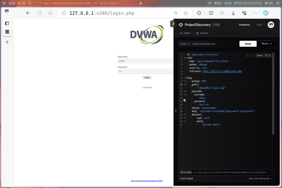 AI 将根据所选文本生成一个 Nuclei 模板。