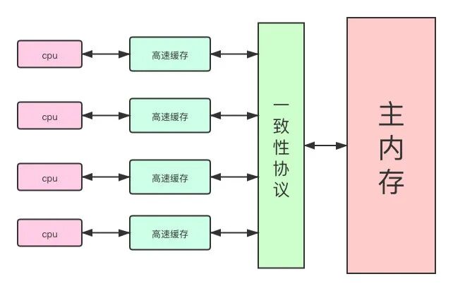 当CPU写数据时,如果发现操作的变量是共享变量,即在其他CPU中也存在该变量的副本,会发出信号通知其他CPU将该变量的缓存行置为无效状态,因此当其他CPU需要读取这个变量时,发现自己缓存中缓存该变量的缓存行是无效的,那么它就会从内存重新读取。