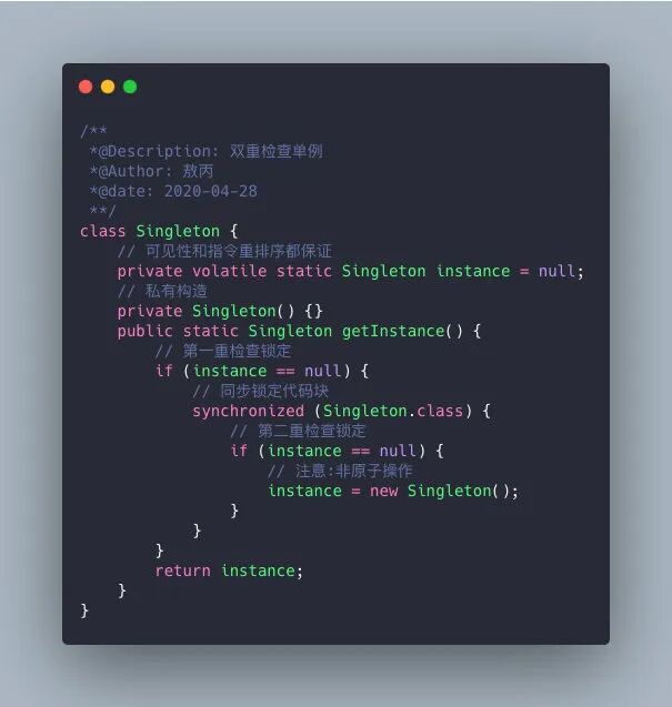 - volatile可以在单例双重检查中实现可见性和禁止指令重排序,从而保证安全性。