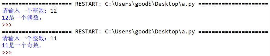 a = int(input("请输入一个数字:")) if a % 2 == 0: print(a,"是一个偶数。") else: print(a,"是一个奇数。")