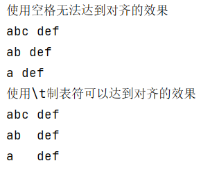 System.out.println(``"使用\\t制表符可以达到对齐的效果"``);