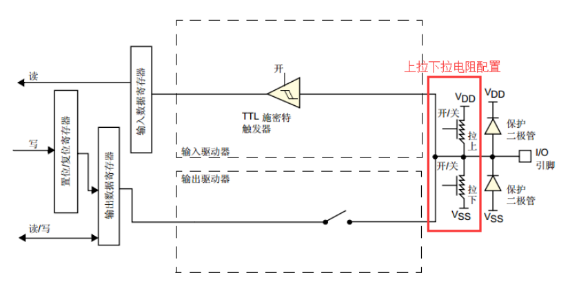 输出状态:开漏/推挽+ 上拉/下拉电阻。