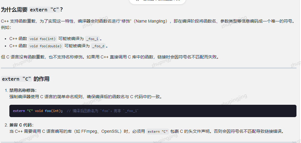 ffmpeg类库是基于c语音实现的,如果在c++中引用相关类库,则需要禁用名称修饰。